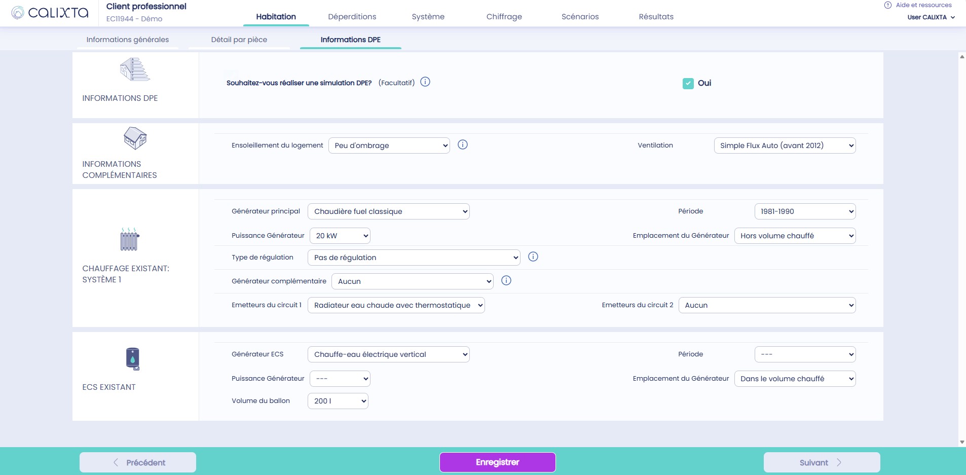 A noter : la simulation DPE sur Calixta se fait en parallèle d’une étude classique car il est indispensable de connaître les déperditions du logement.
